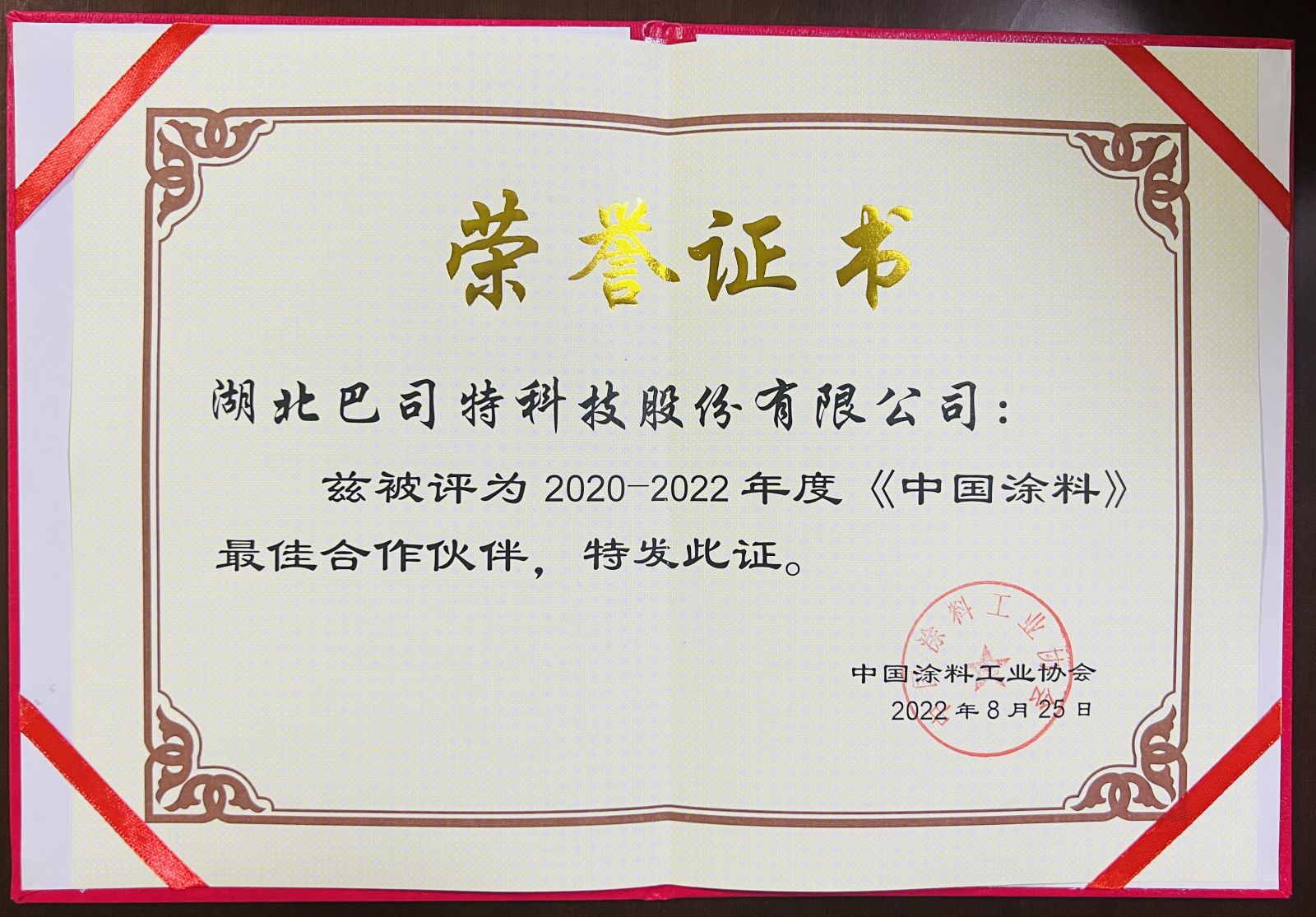 會(huì)中,湖北巴司特科技股份有限公司總經(jīng)理吳瑞浪被中國(guó)涂料工業(yè)協(xié)會(huì)和《中國(guó)涂料》雜志聘為第九屆編委會(huì)委員。同時(shí)被《中國(guó)涂料》評(píng)為2020—2022年度最佳合作伙伴。